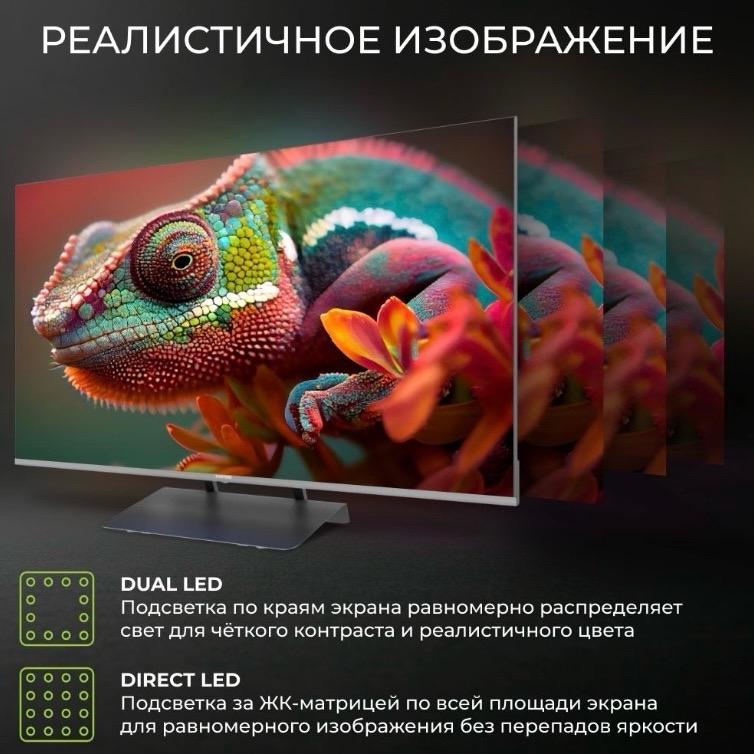 0% Ещё 1 фото 50" (127см) - 75" (189см) 55" (140см) Ultra HD (4K) - Телевизор Hartens HTS-55UHDO11G-HC22 В наличии 21 990 руб. Цвет: Серый Разрешение: 3840x2160 (16:9)